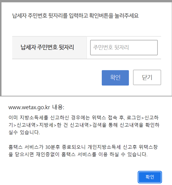 확인을 클릭하면 Wetax의 개인지방소득세(양도소득분) 신고서로 이동하게 되는데요.