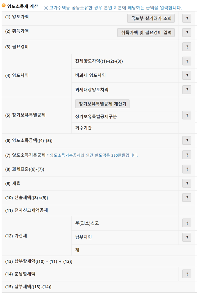 이제 부터 본격적으로 양도소득세를 계산합니다.