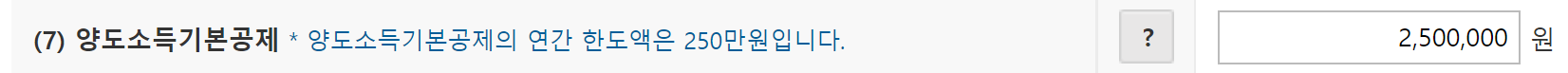 다음으로 (7) 양도소득기본공제액을 기입합니다.