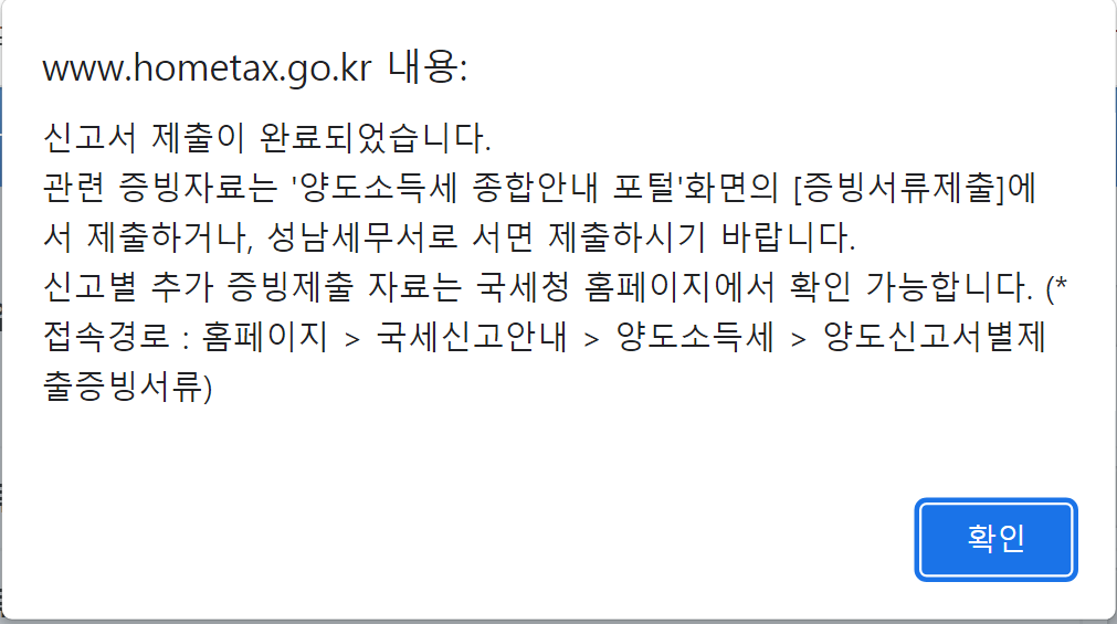 비로소 양도소득세 및 지방소득세 신고서가 마무리 됩니다.