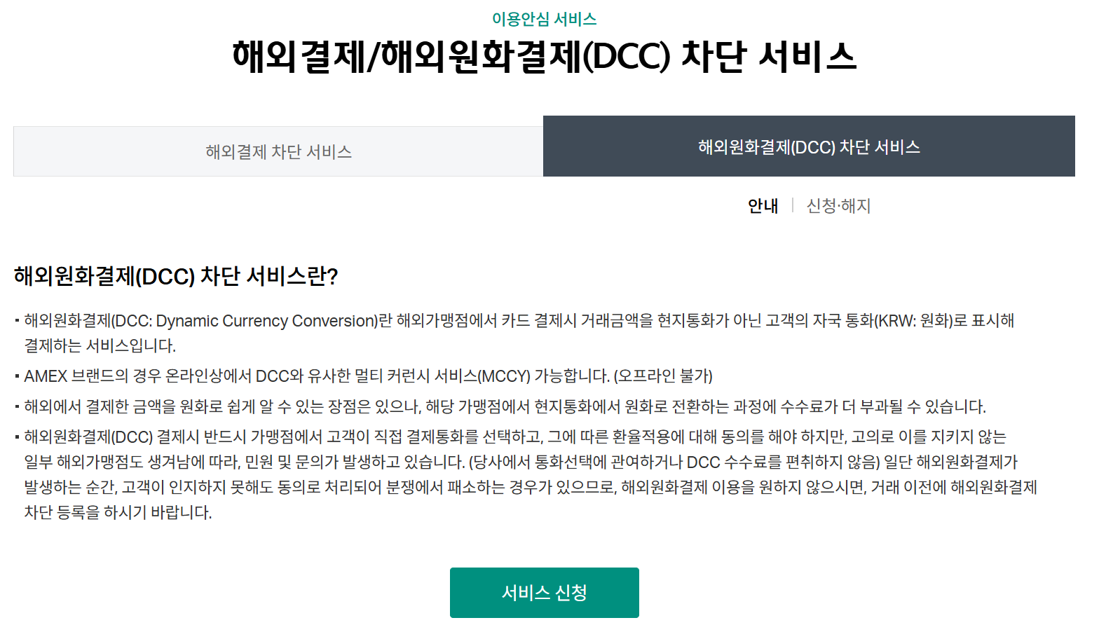 ▷ 해외원화결재(DCC) 차단 서비스 신청