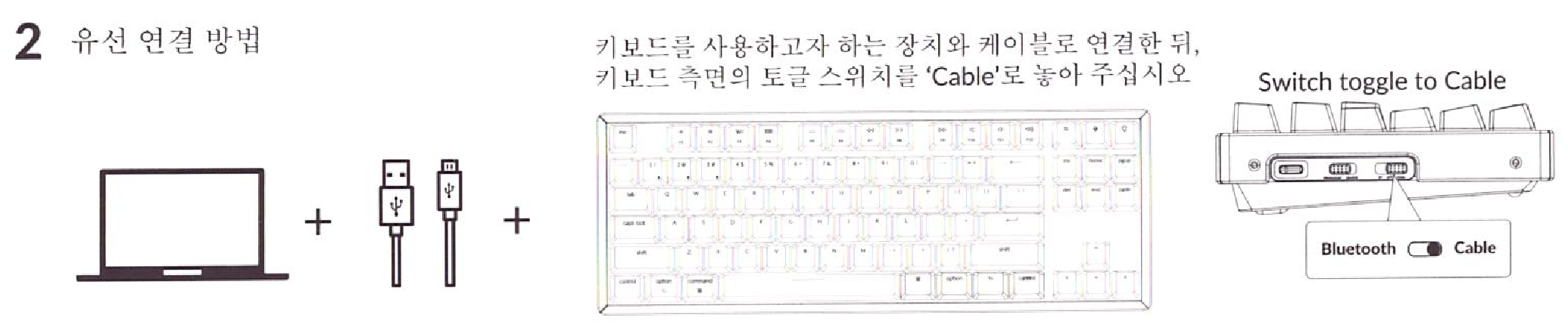 유선 연결은 키보드와 장치를 연결 후, 키보드 측면의 스위치를 조정하면 됩니다.